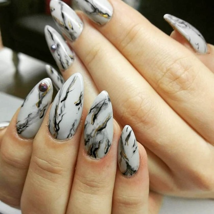 Модный мрамор в светлых оттенках – маникюр на миндальные ногти с дизайном